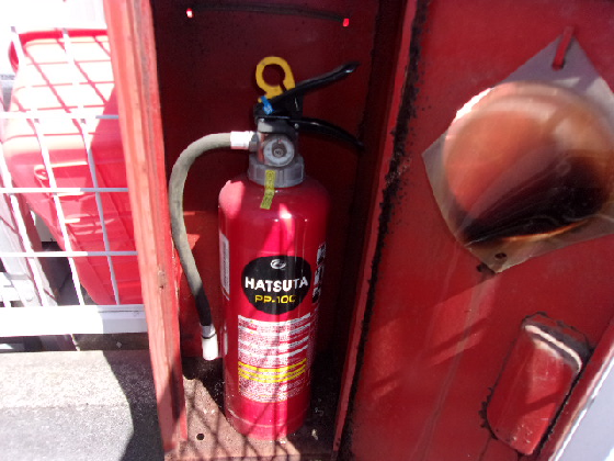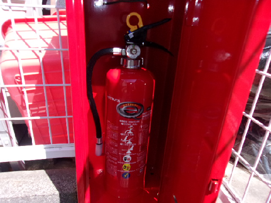 受信機の取り換えが終わりました。感知器の未警戒工事の前に消火器を取り替えます。